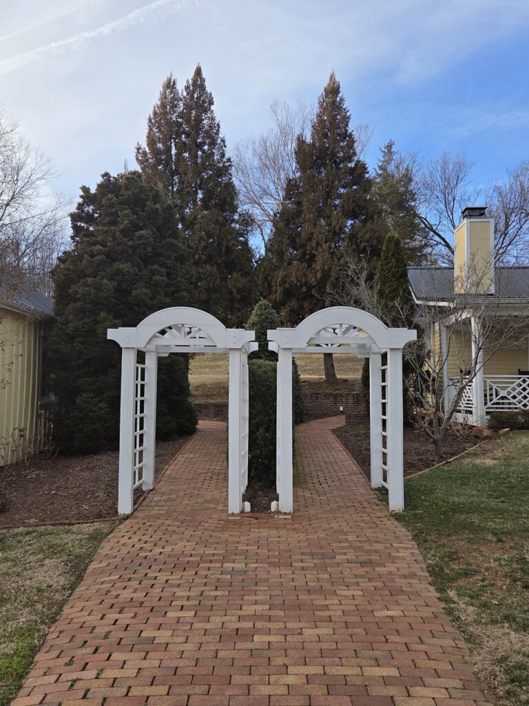 Beginning Creekside (several rooms are separately sited Creekside), we worked our way past the spa to the event barn, which was adjacent to the well-tended “ruins”! We visited the boxwood gardens with the homage to “The Raven” before heading up the hill to view the Blue Ridge mountain range in the growing dusk.